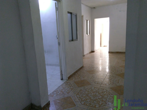 La casa-bodega tiene garaje, tres alcobas, dos baños, patio, cocina, frente amplio.